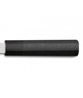 - Der, für Linkshänder entwickelte, Griff der Hekiju Messer ist abgerundeter und besteht aus einem robusten Harz mit lederartigen Prägung.
