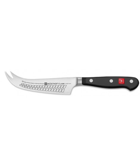 - Dieses Käsemesser von Dreizack Wüsthof nimmt dank der Doppelspitze den frisch geschnittenen Käse wie eine Gabel auf.