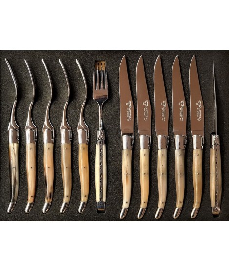 Steakmesser-Set mit Gabel aus Horngriff - Laguiole En Aubrac